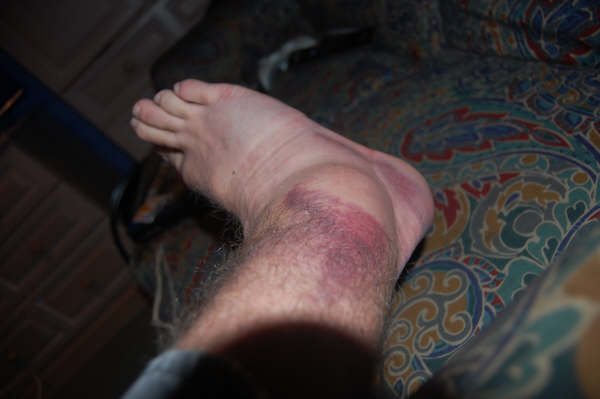 Jonny sent me a little update from over in the UK today & it seems he had a little mishap with his ankle… see the pic below. He will be back on the bike in no time but still looks rather painful. The weather has gone to shit over there as Jonny put it & said that it’s all just indoor park riding right now. All good though as he has a few to choose from which he will be back riding soon enough. Jonny also just put our new Colonial Cranks & Teddy Bars on his bike from Alans BMX & loves them. Thanks Jonny!