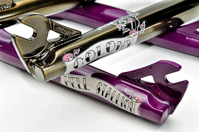 Here are the first pics of Ryan’s new Official bars & Forks for 2010. Shown in Matt Black, Candy Red & Silver Storm. Also available in White & Purple Storm. The bars you can also get in Chrome. These will be available in September around the world.