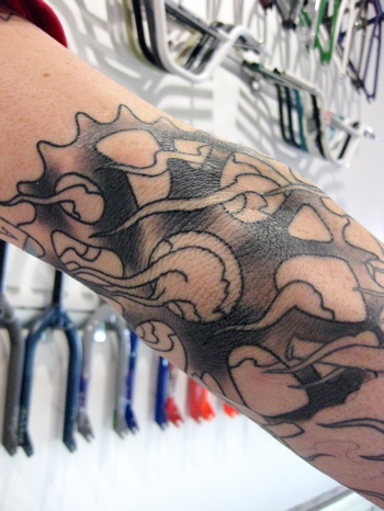Arrived in Melbourne yesterday & dropped in to see the guys at Strictly BMX. They definately have a well set out shop which is really impressive. They are on top of their game for sure. Plus, Kyle who works there, recently got a new tatt which features Ryan’sOfficial sprocket. Pretty damn cool.
