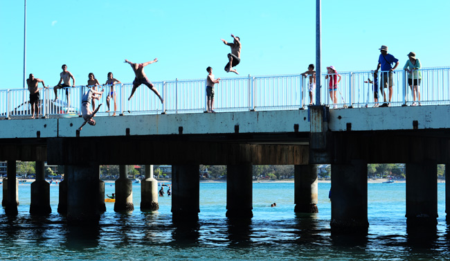 It gets stupid hot up here in Brisbane during summer, yesterday some of the boys went down to a dive spot and got pretty loose off the bridge.