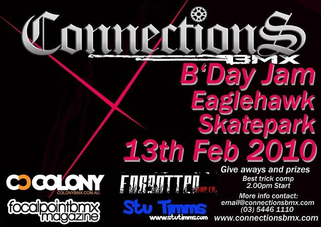 Connections BMX are having a birthday celebrations jam on February the 13th. We’re getting behind the event with prizes galore. Should be a fun day for sure. Hit up Connections for more info.