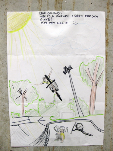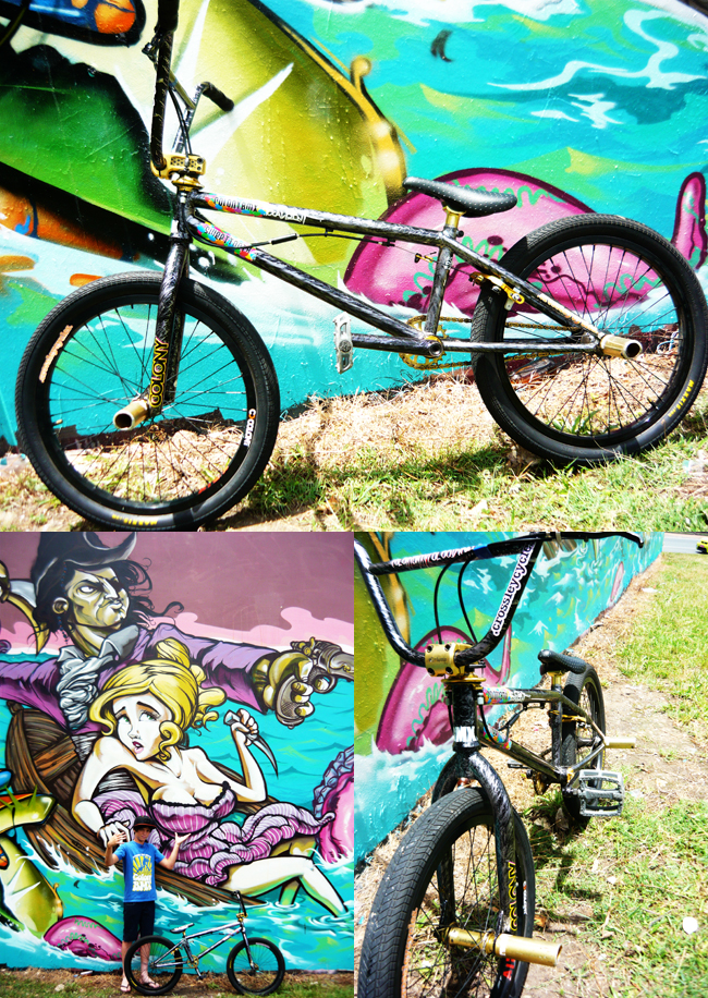 Cooper is about to head off on a mammoth road trip from Melbs up to Brisbane via Wangarratta for this weekends Jamuary Comp put on by The Sanction. He will also drop into Canberra on the way to see the guys at Backbone BMX & no doubt ride the amazing park at Woden. He will also be dropping off the fresh new issue of Focalpoint on the way too, straight off the presses. Word. He also sent me this cool photo as well… loving the trails styles. Oh by the way, a Cooper bike check is coming soon.