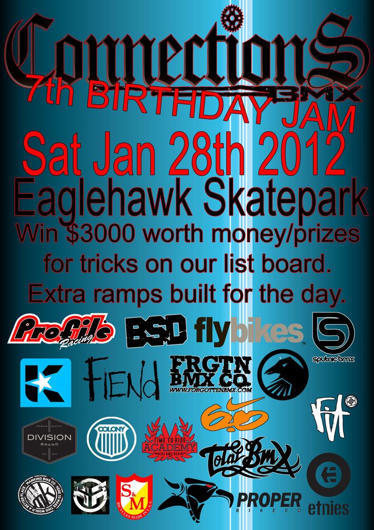 Connections BMX in Eaglehawk are turning 7 years old & to celebrate they are throwing a huge jam with plenty of prizes. Get yourself there on Saturday the 28th January for all the fun.