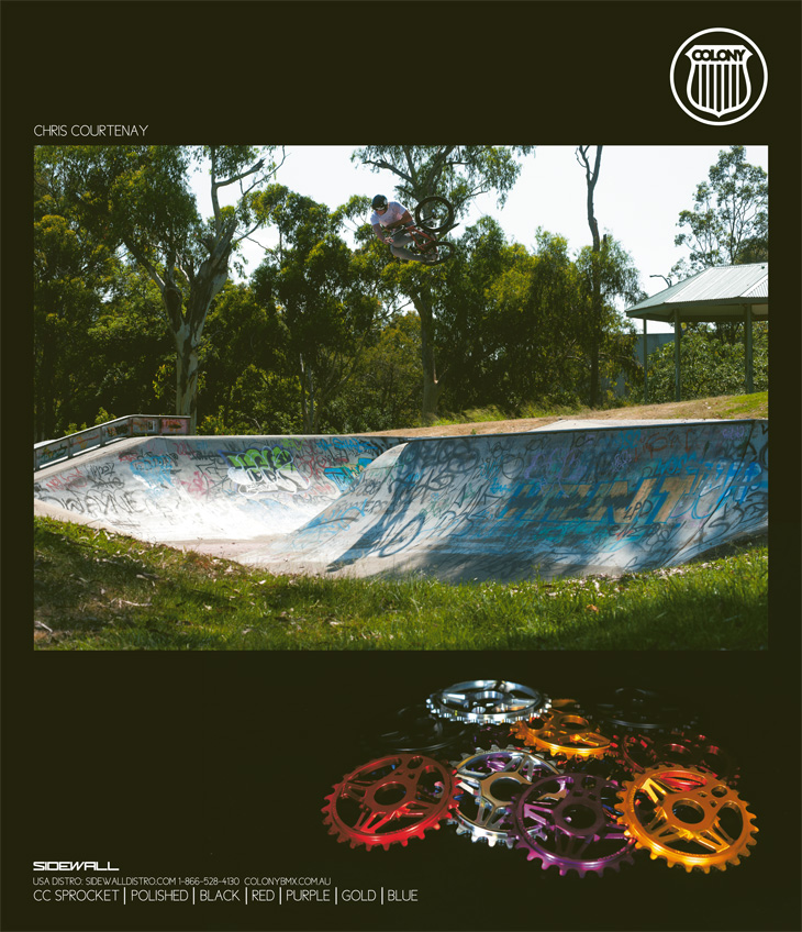 A recent print advert we had in RideUS featuring Chris doing a 360 table at Browns Plains park in Brisbane promoting his signature CC sprocket.