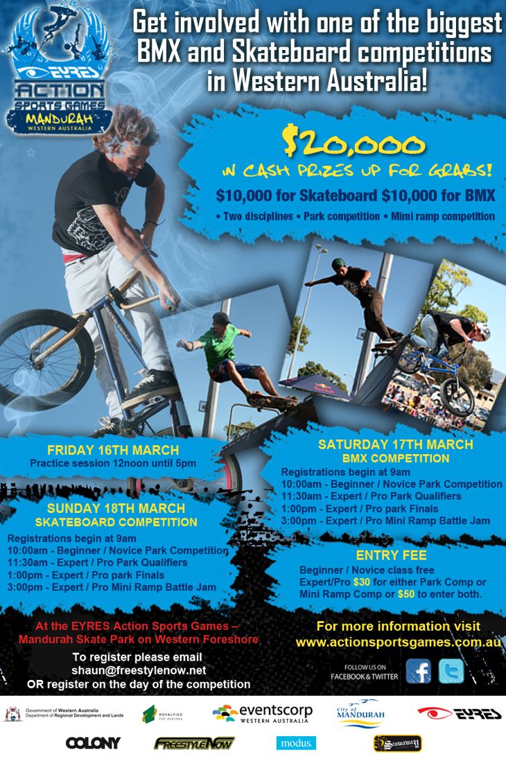 Next weekend over in Mandurah Western Australia, there is a comp set for March 17th with a huge $10,000 prize money up for grabs for BMX.