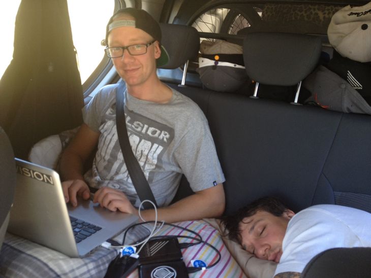 Cooper Brownlee is a working machine. Whether it’s on the bike, on the computer or behind the lens, he never seems to stop. Hence how the name for the Twenty Four Seven Bars came about. Cooper lives & breathes BMX. He is on his way to Canberra to ride for the long weekend right now & is still working whilst on the move. Check out his temporary office in the back of the iLoad. That’s Mick Bayzand beside him asleep as well. Updates here from their travels over the days ahead.