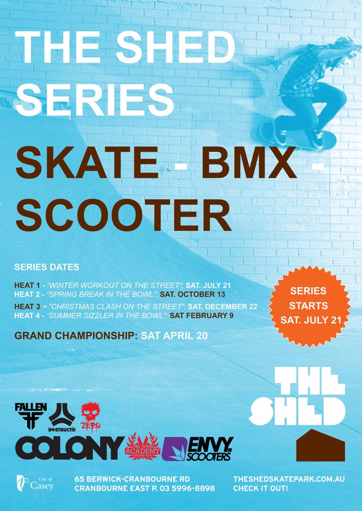 The Shed Skatepark down in Cranbourne, Melbourne are having a series of comps leading up to a grand final in April next year with some great prizes up for grabs. More importantly though, good times on your bike to be had. I would expect that you will see our newest recruit, Dean Anderson there shredding. You may even be blessed with the Pete Radivo show. Pete rules. Check the flyer below for details.