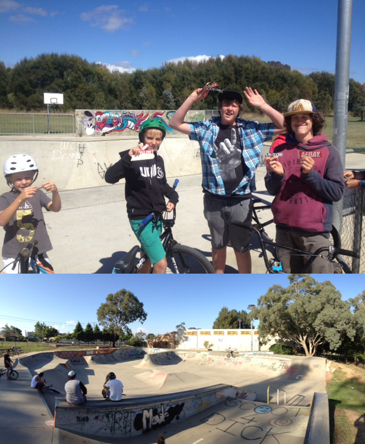 So in the last week or so I’ve been hitting a few places just out of canberra. I went to Goulburn for a roll, the place is huge but the ramps are weird which makes for an interesting ride. Also went out to Bungendore which is only half hour outta canberra but its got a sick little bowl and the kids there were loving the chance to get some free stickers! Also big news in Canberra. Act jam is back and it’s gunna be sick. Over the long weekend there will be jams at 3 iconic skateparks finishing up with a BBQ at Backbone. Gunna be an epic weekend, everyone should come!!