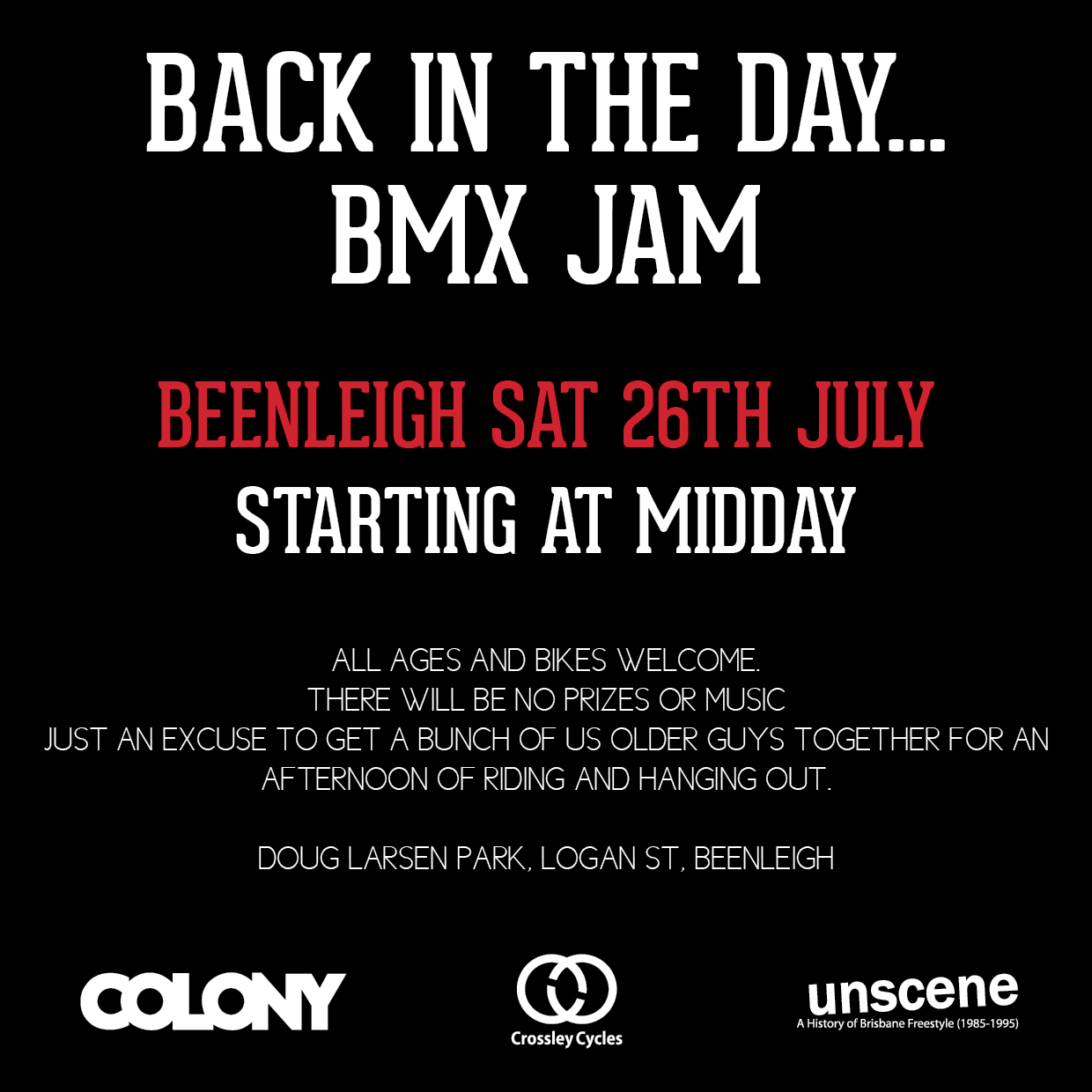 Just like back in the day, there will be a relaxed session planned at Beenleigh for all to enjoy. Come along & have a great afternoon at Australia’s most iconic BMX park. So much history has gone down on this park. It should be a great day of riding & talking about BMX now & in the past.