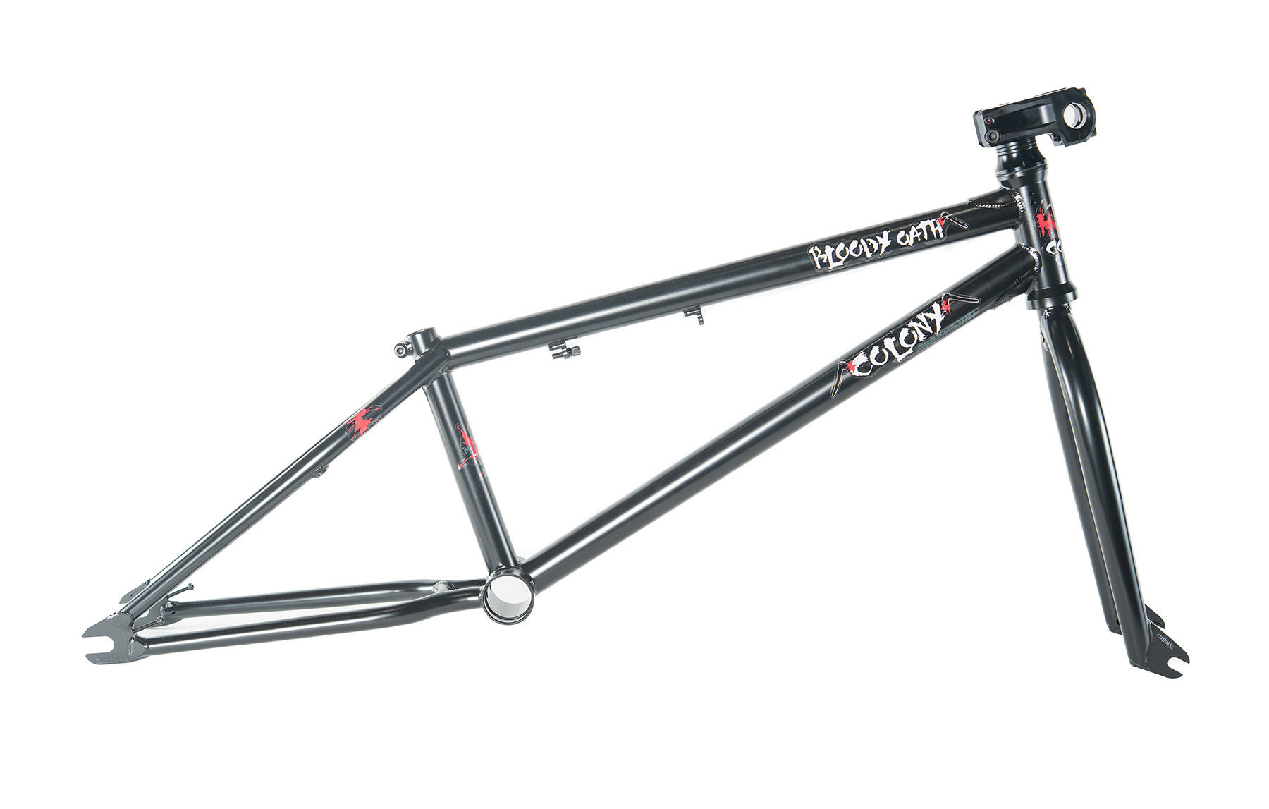 Celebrating 20 years of Colony are these very limited edition Colony Bloody Oath BMX Frame, Fork, Stem & headset kits.